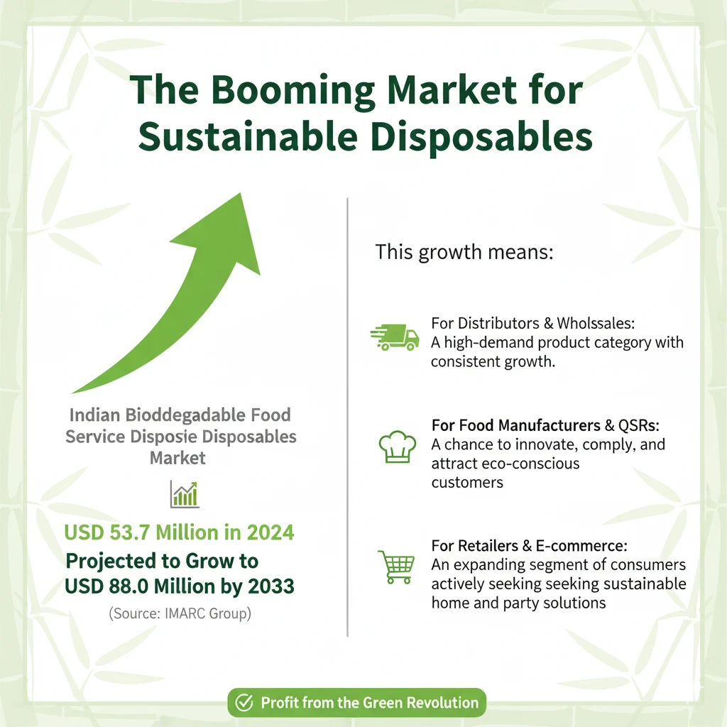 The shift isn’t just about compliance; it’s a massive market opportunity. The Indian biodegradable food service disposables market, valued at USD 53.7 Million in 2024, is projected to grow significantly to USD 88.0 Million by 2033 (Source: IMARC Group).